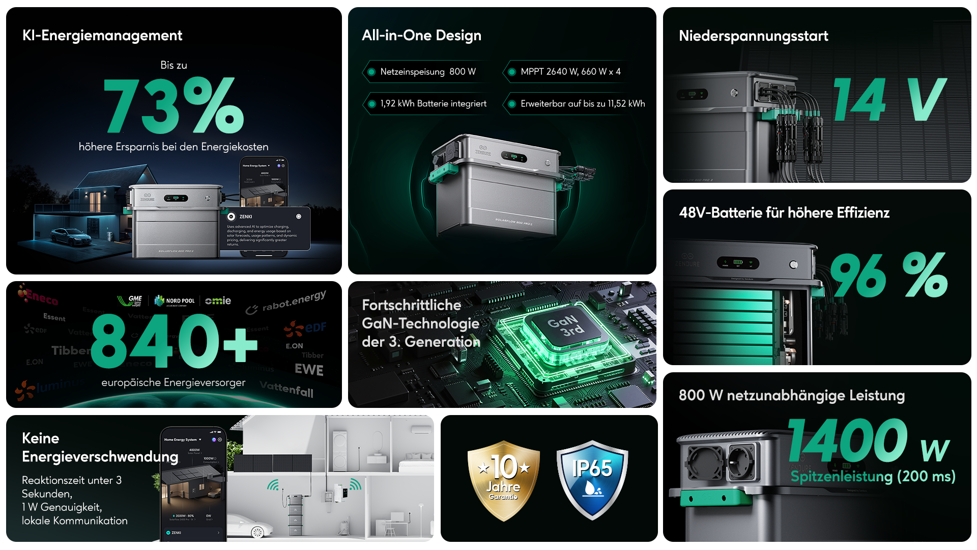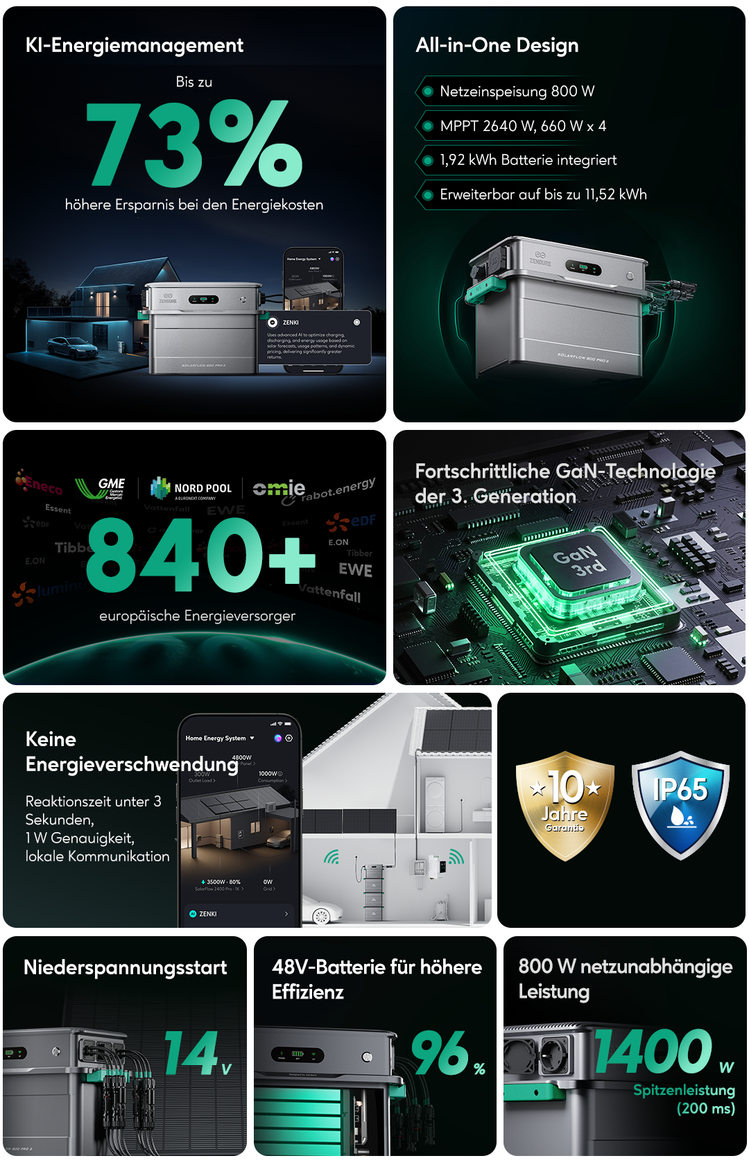 Der SolarFlow 800 Pro 2 nutzt die dritte Generation der GaN-Halbleitertechnologie (Galliumnitrid), um Energieverluste bei der Umwandlung deutlich zu reduzieren.